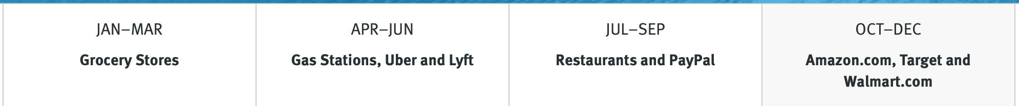 可见涵盖还是非常广的,个人经验来说基本上后两个季度的Cashback都能刷满,第一个季度可以去超市买Amazon的Giftcard轻松刷满。